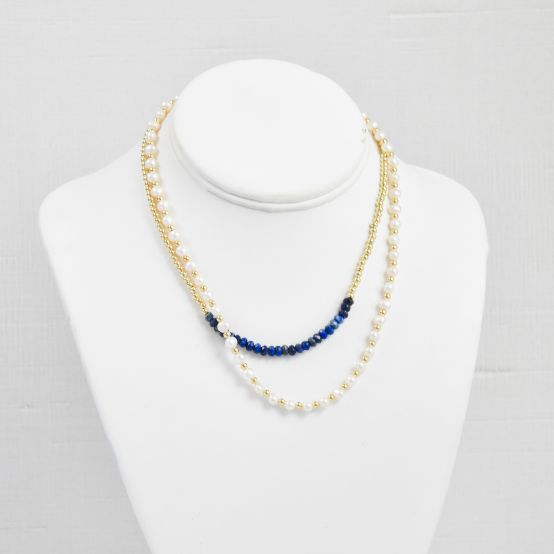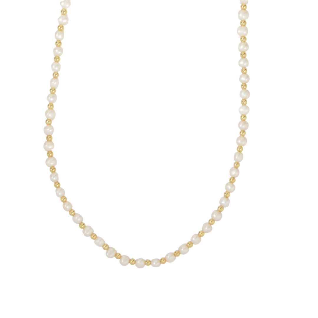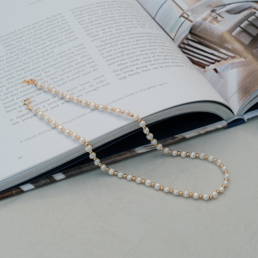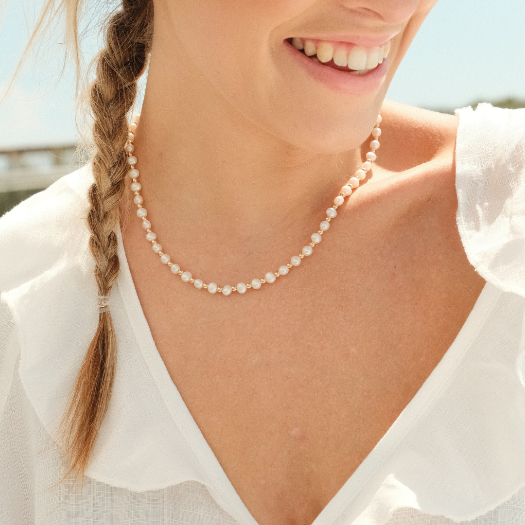 4mm freshwater pearls alternating with 3mm 14k gold-filled beads. Pairs perfectly with any of our pearl bracelets - our favorite is the Chic Bracelet!