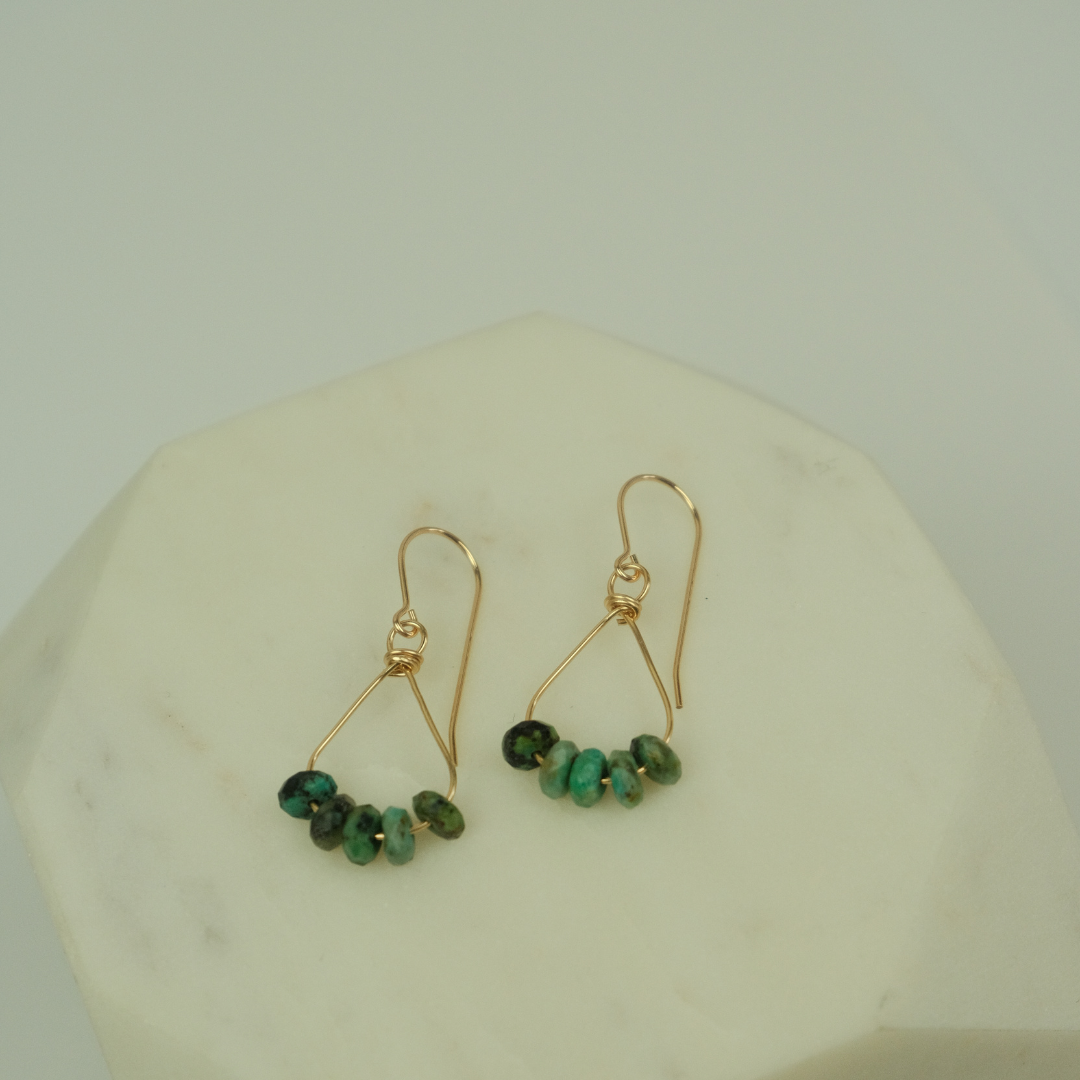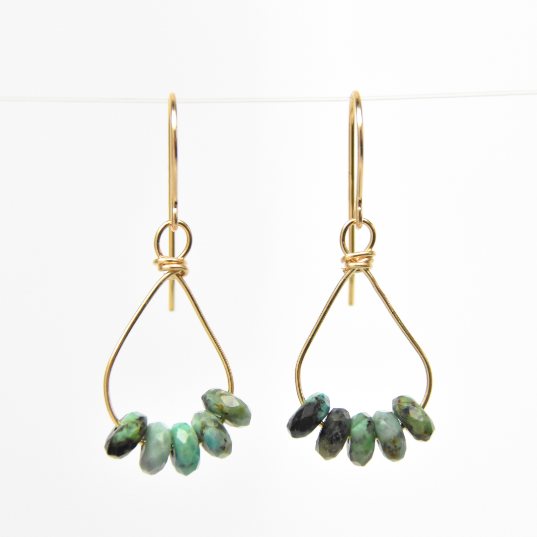 African Turquoise rondelles on a 14k gold filled wire teardrop.
