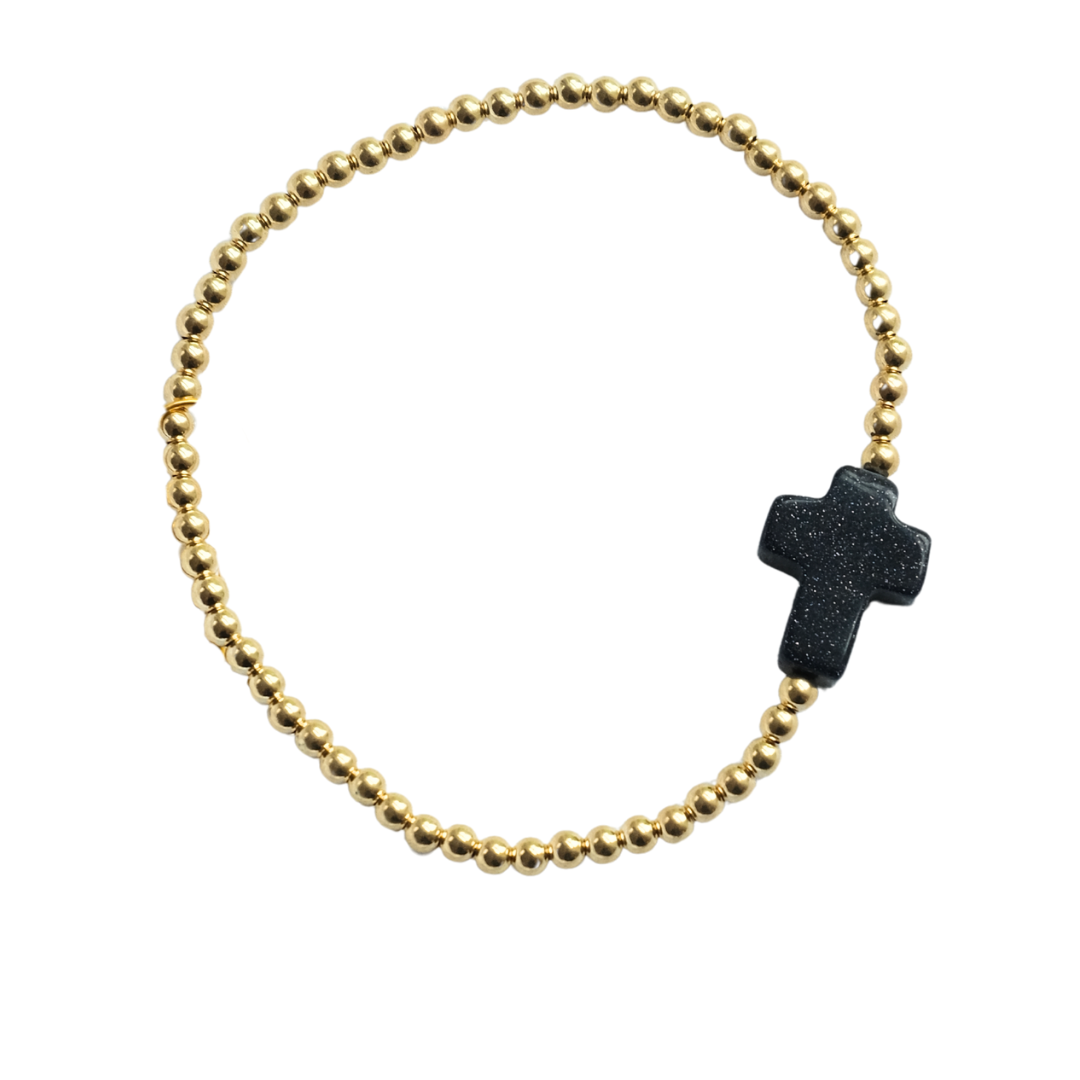 Stone cross beading will remind you to always hold faith! Each cross is unique in color and pattern. Blue Goldstone is a dark navy stone with sparkle flecks that make it look like a night sky.