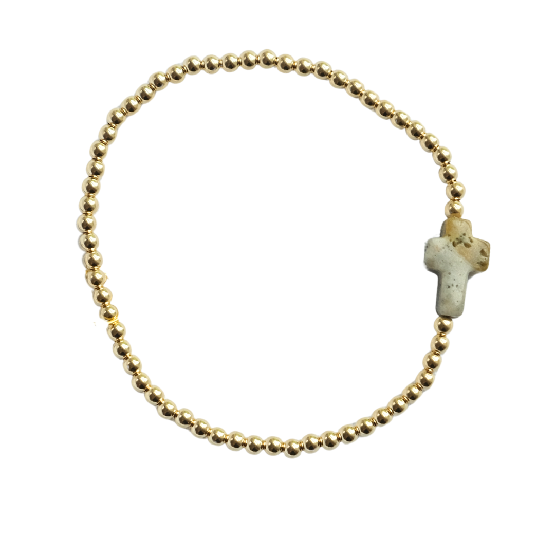 Stone cross beading will remind you to always hold faith! Each cross is unique in color and pattern. Lace Agate has a white and yellow marble look. Some have more yellow, while some have more white/grey.