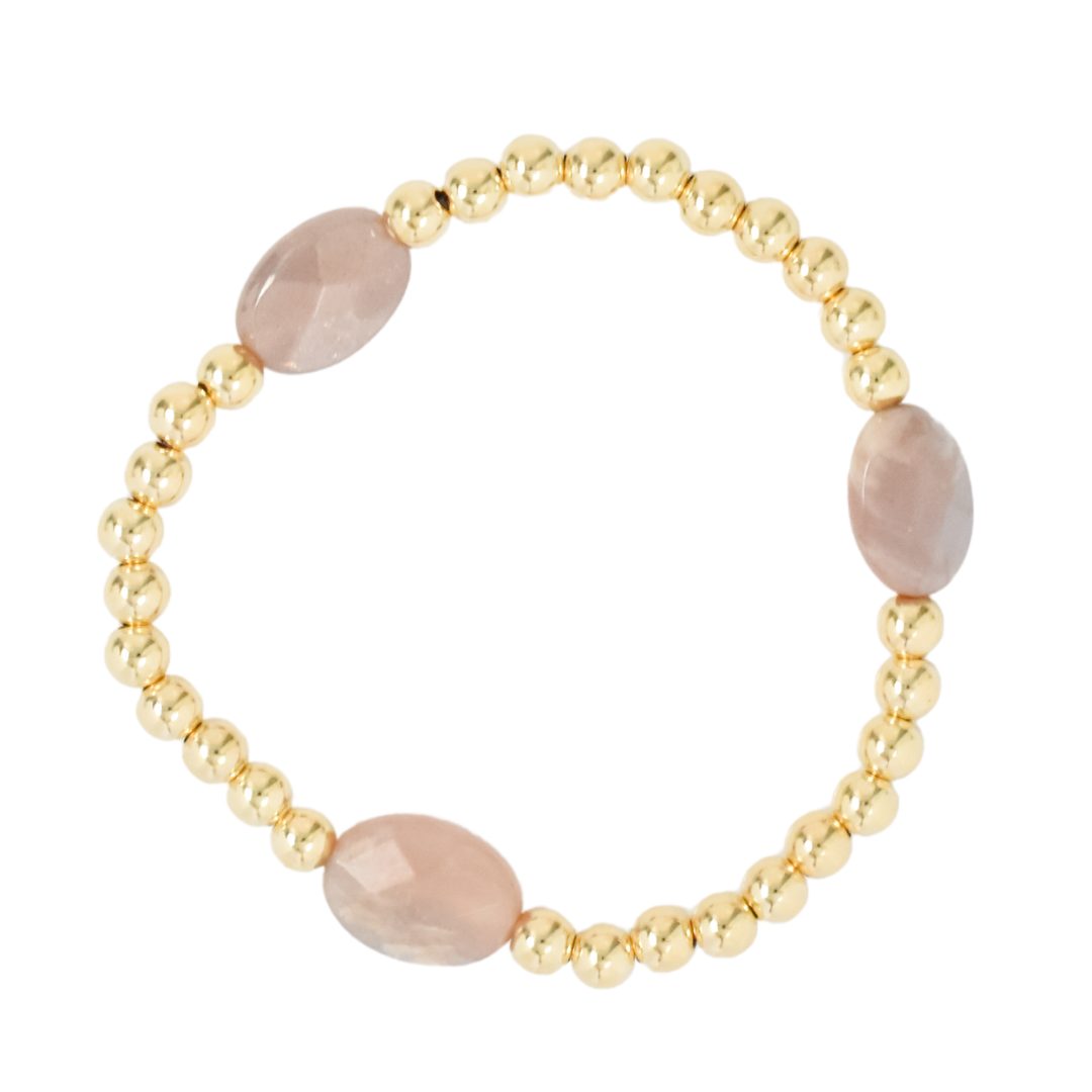 3 Natural Peach Moonstones alternating with 5mm 14k gold filled beads. Moonstones are approximately 12x16mm, faceted oval shaped stones.