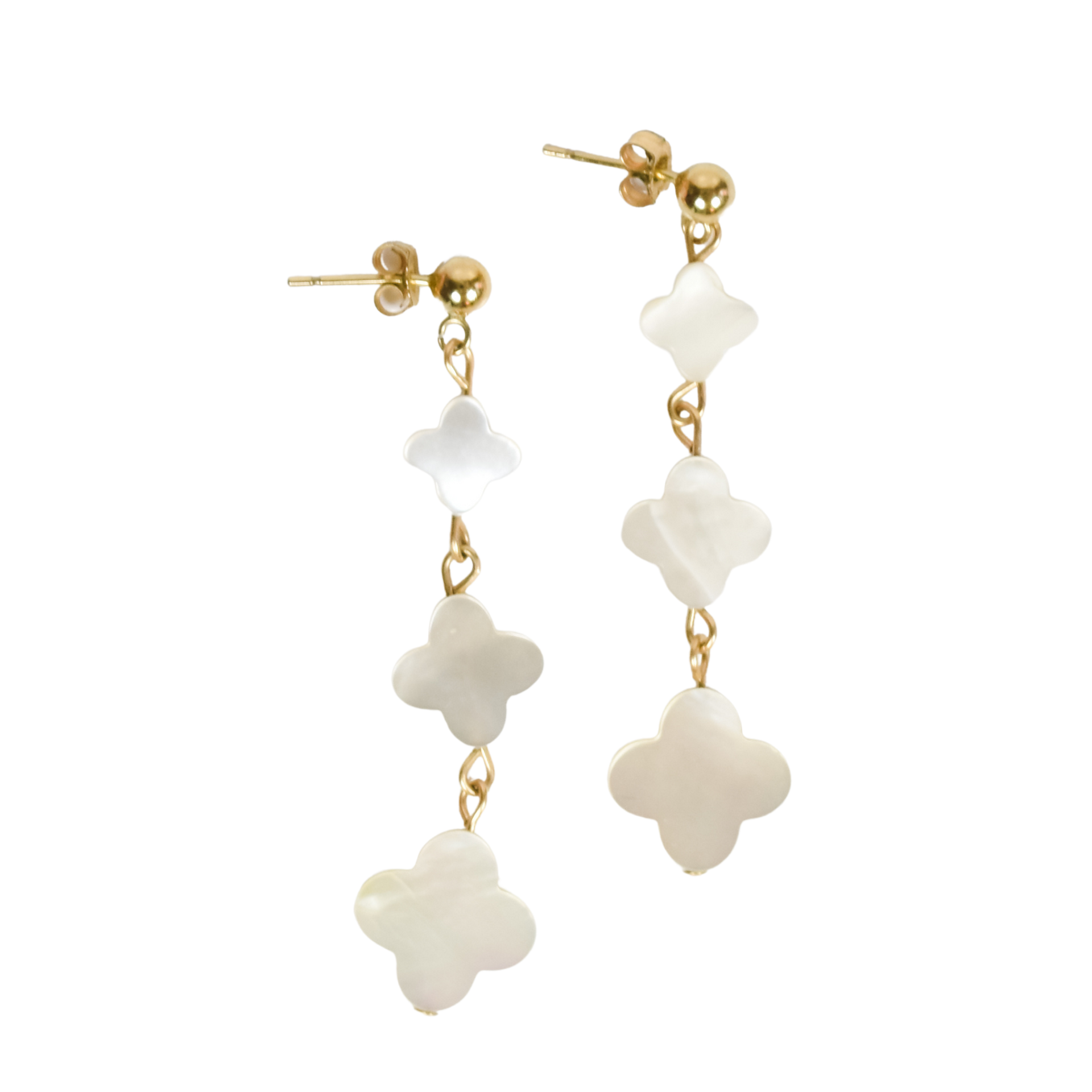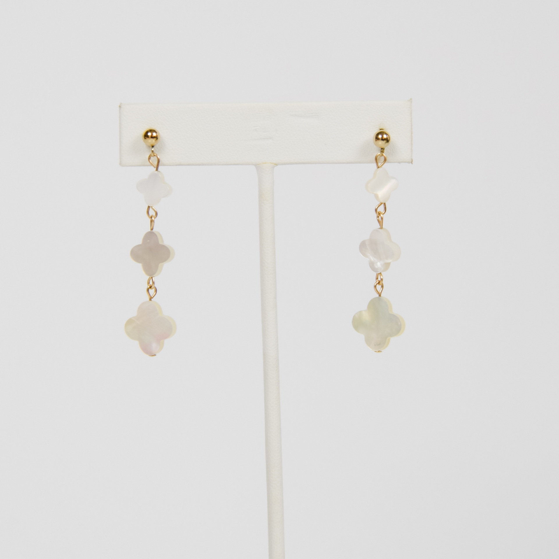 14k Gold Filled Ball Stud Earring with 3-tiered Mother of Pearl Floral Beads.