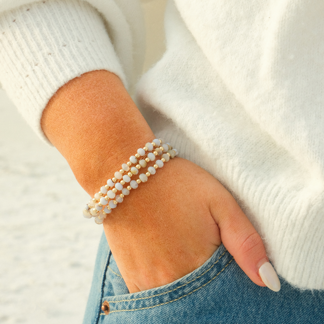 Add a little pop of color to any stack with our genuine gemstone bracelets!