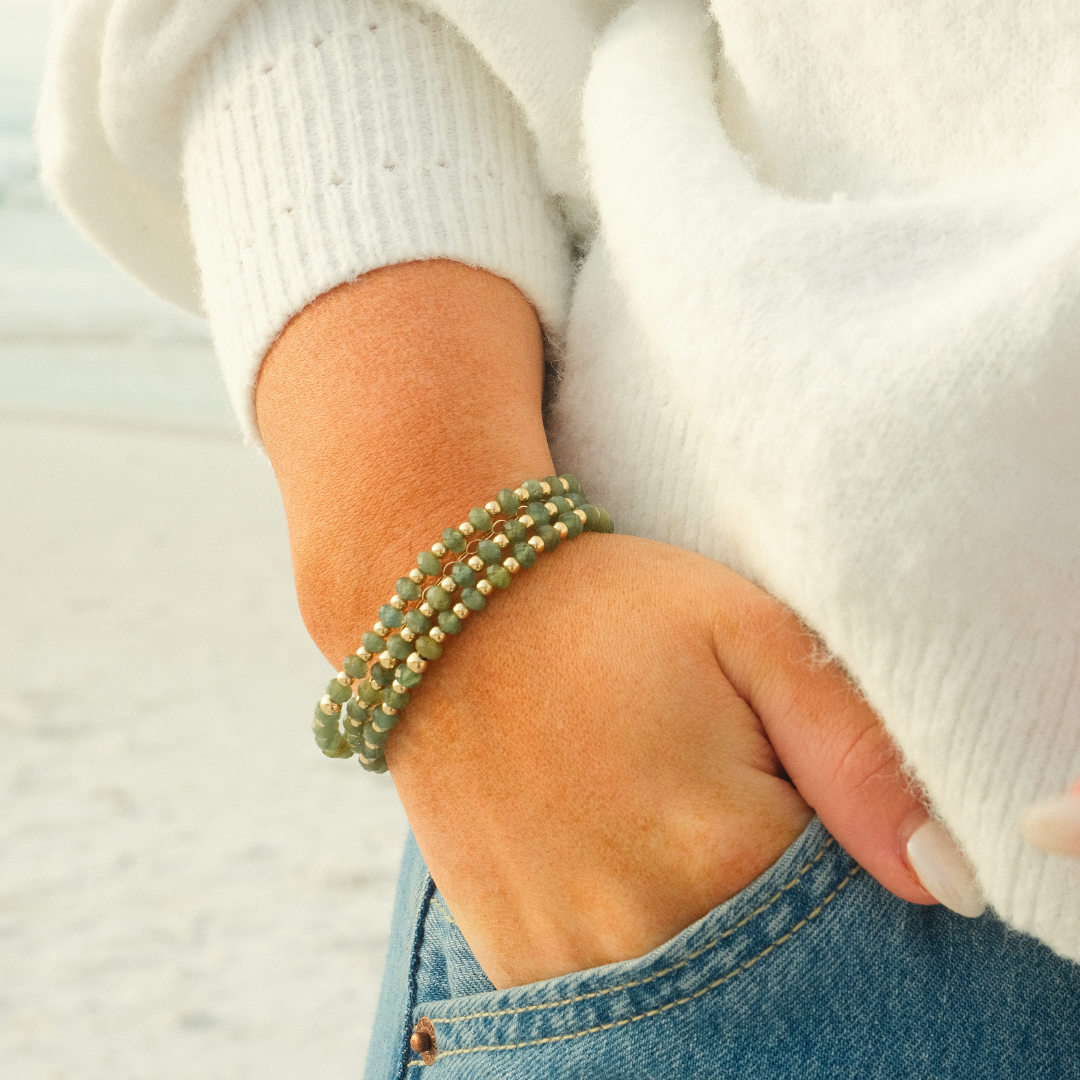 Add a little pop of color to any stack with our genuine gemstone bracelets!