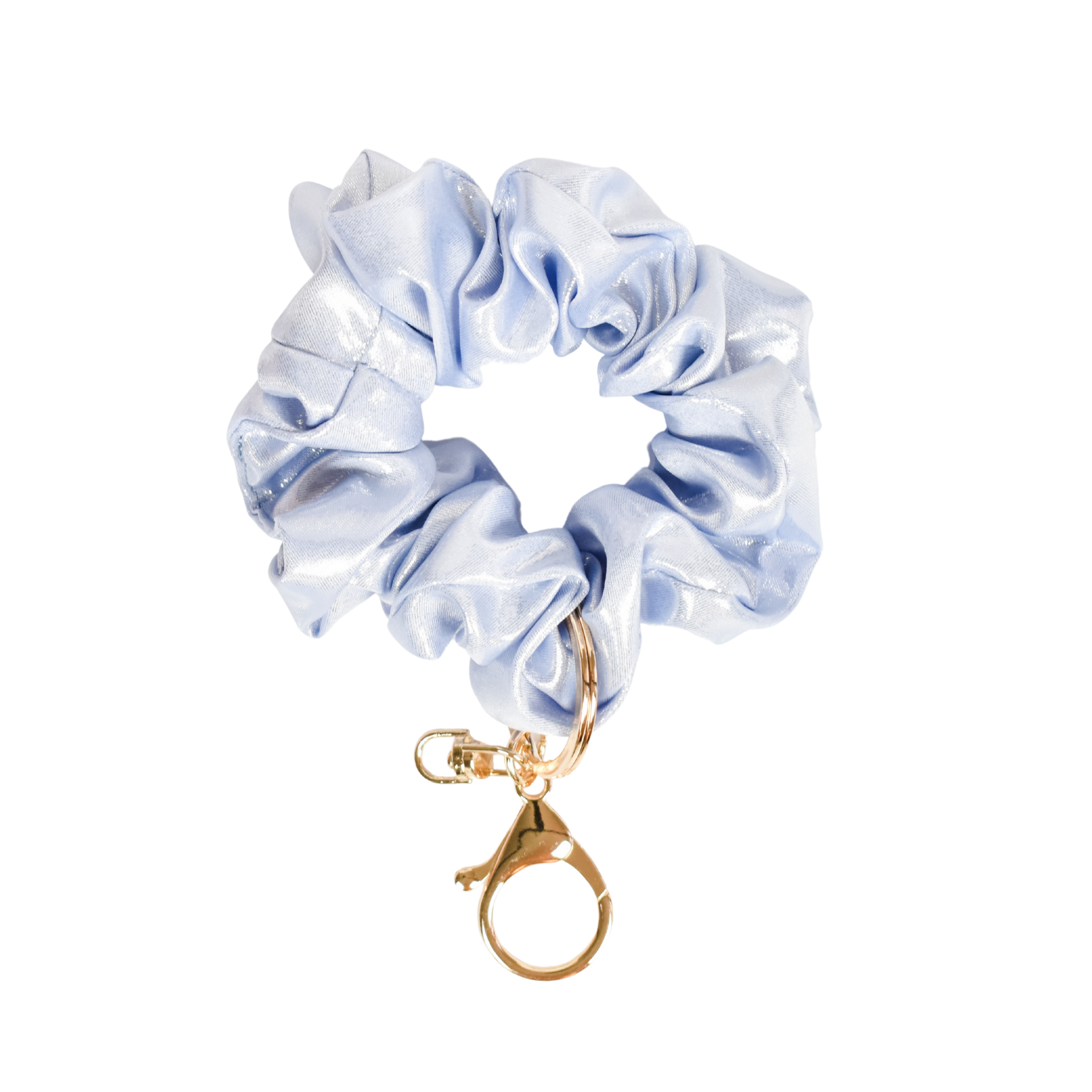 Scrunchies are cotton or athletic fabric with gold tone hardware.