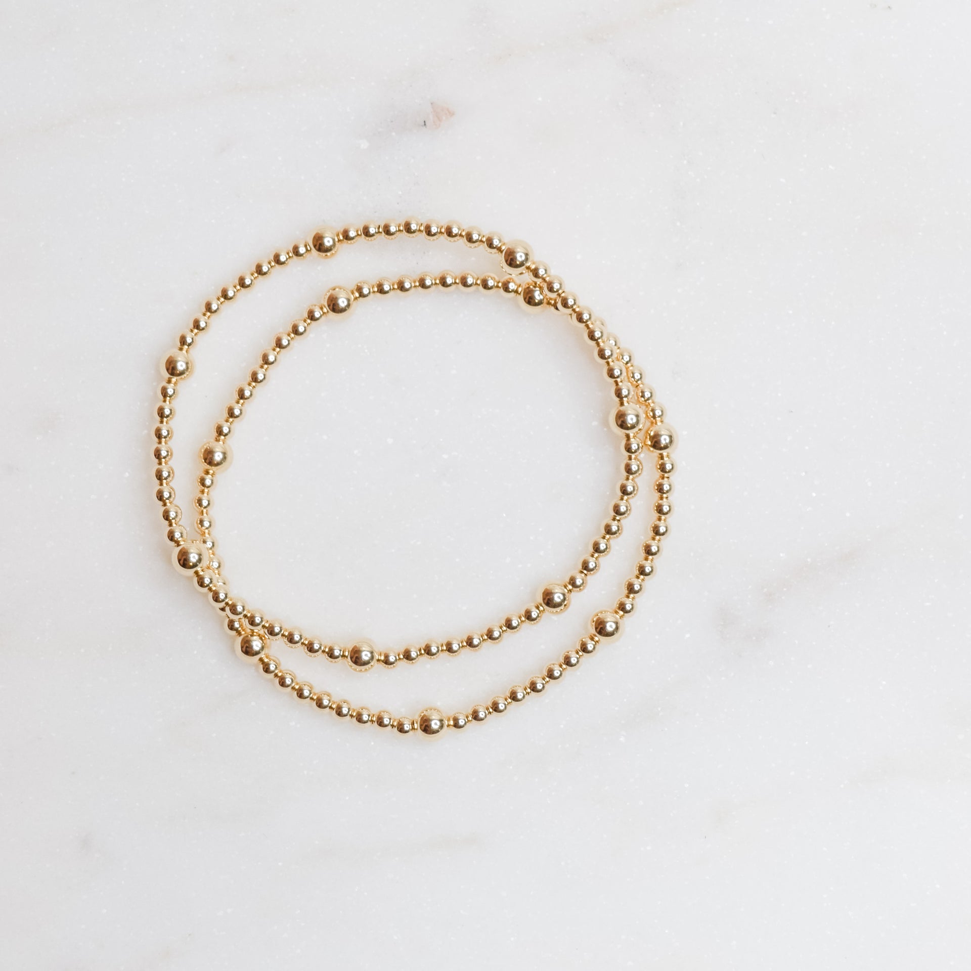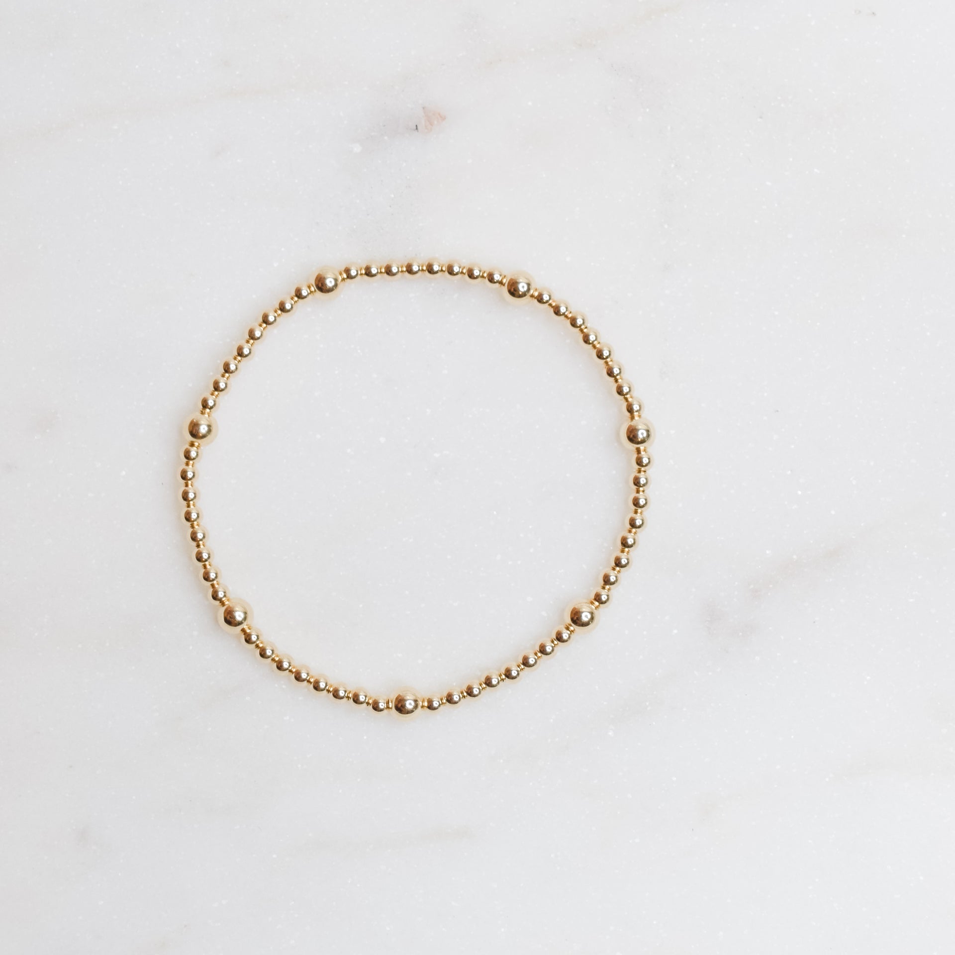 7" / 3mm and 5mm 14k gold filled beads, on stretch string for ease