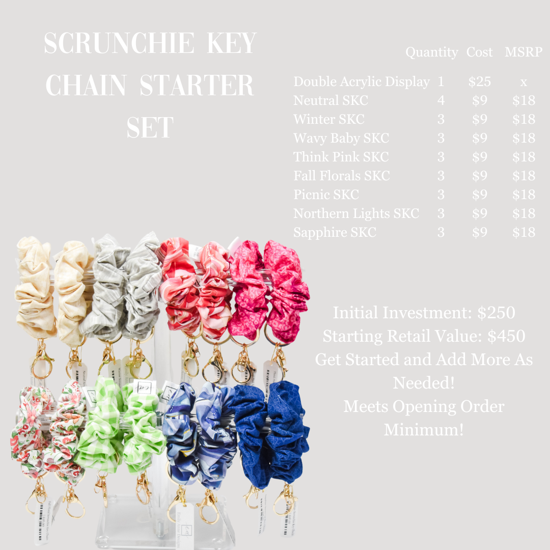 Get Started with our best selling Scrunchie Key Chains and a display - you'll be ready to start selling as soon as your order arrives!