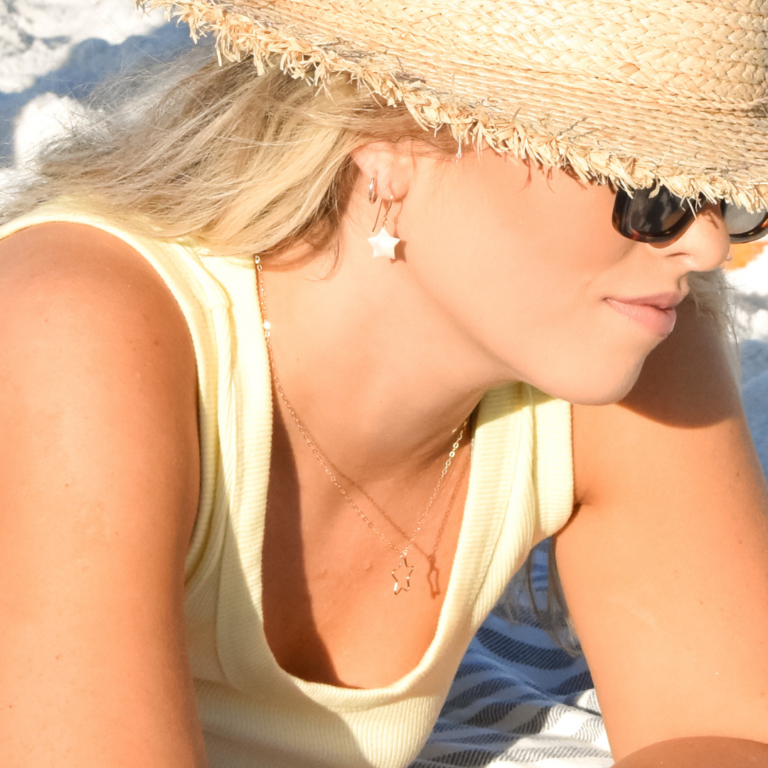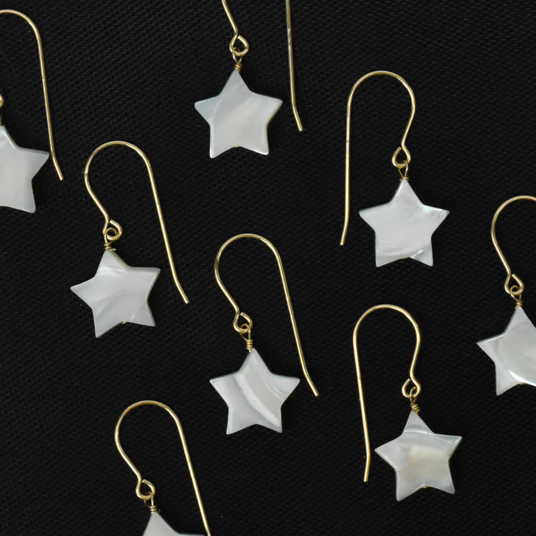 11mm Star Mother of Pearl Shell Bead on French ear wire hook.