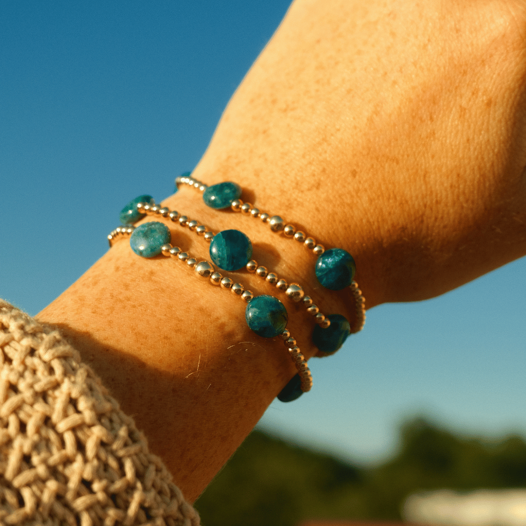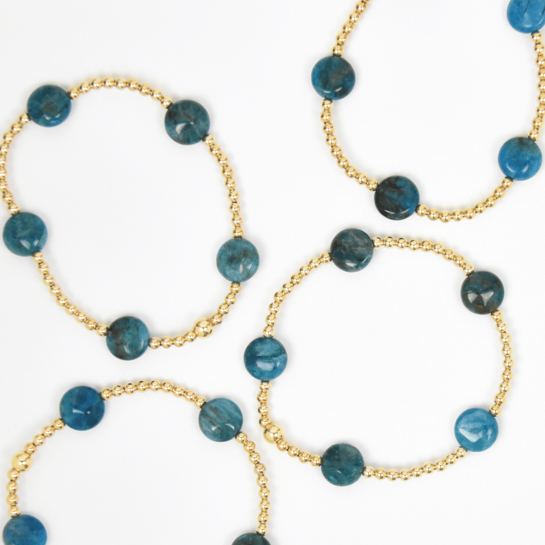 10mm Natural Teal Blue Apatite Coin Beading with 3mm 14k gold filled beads