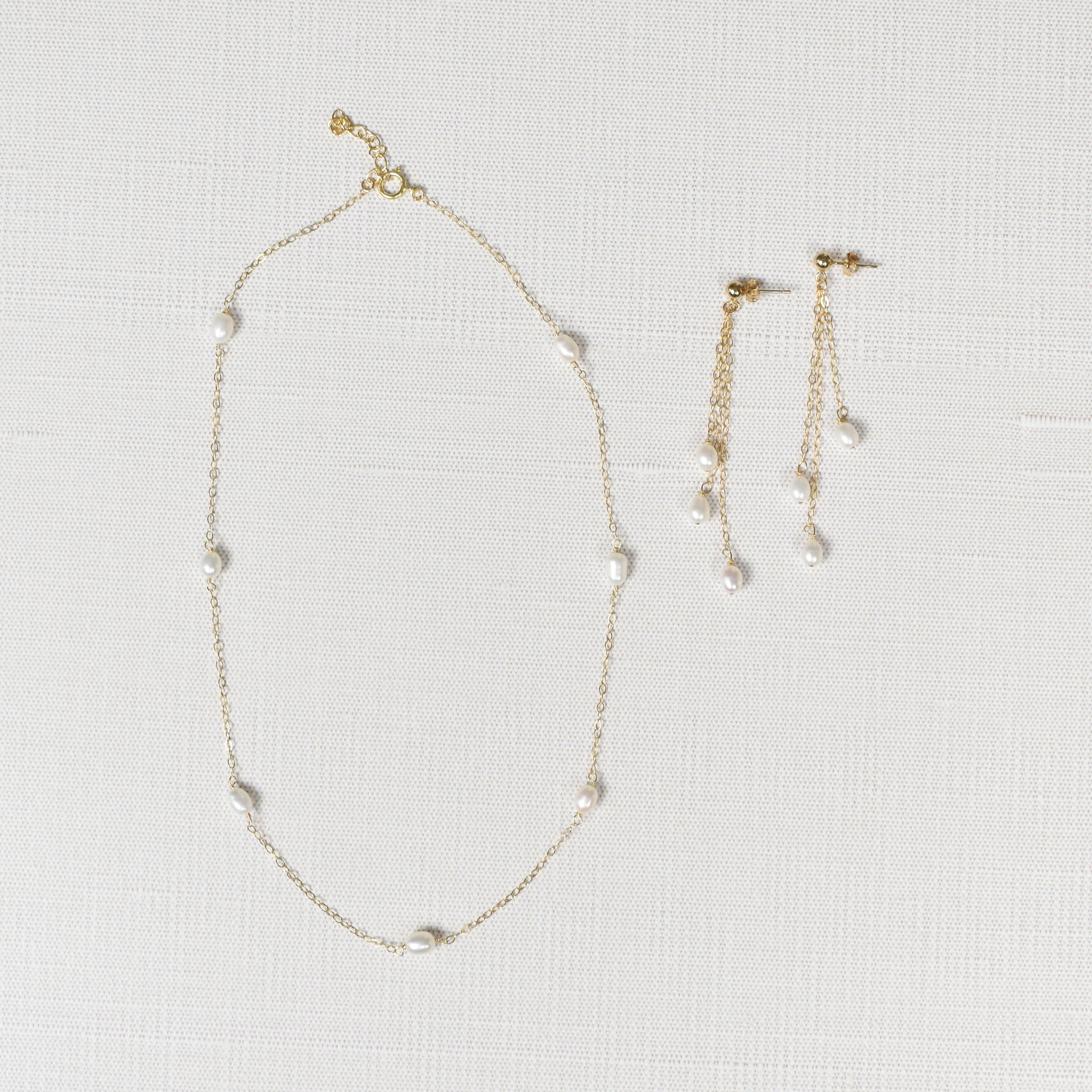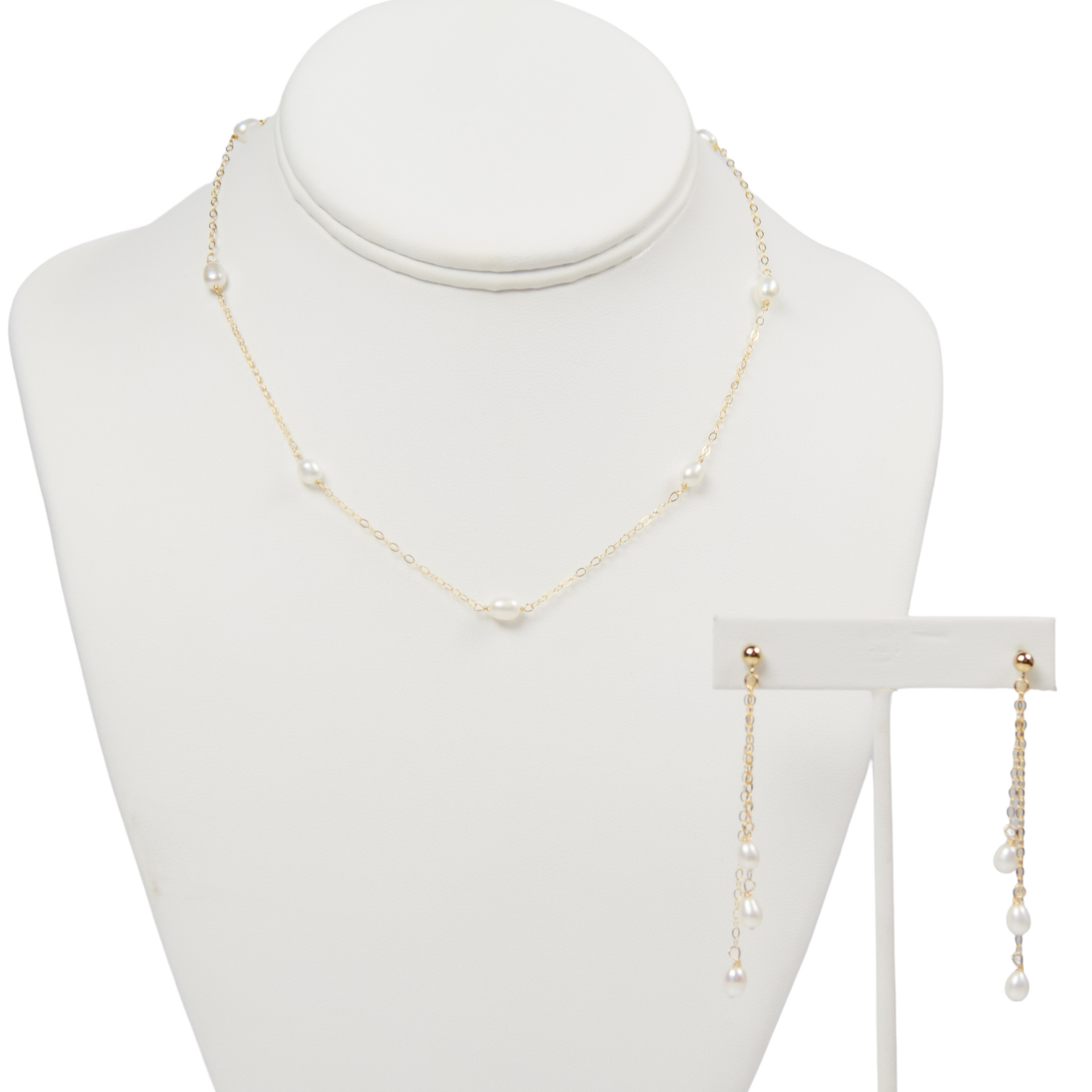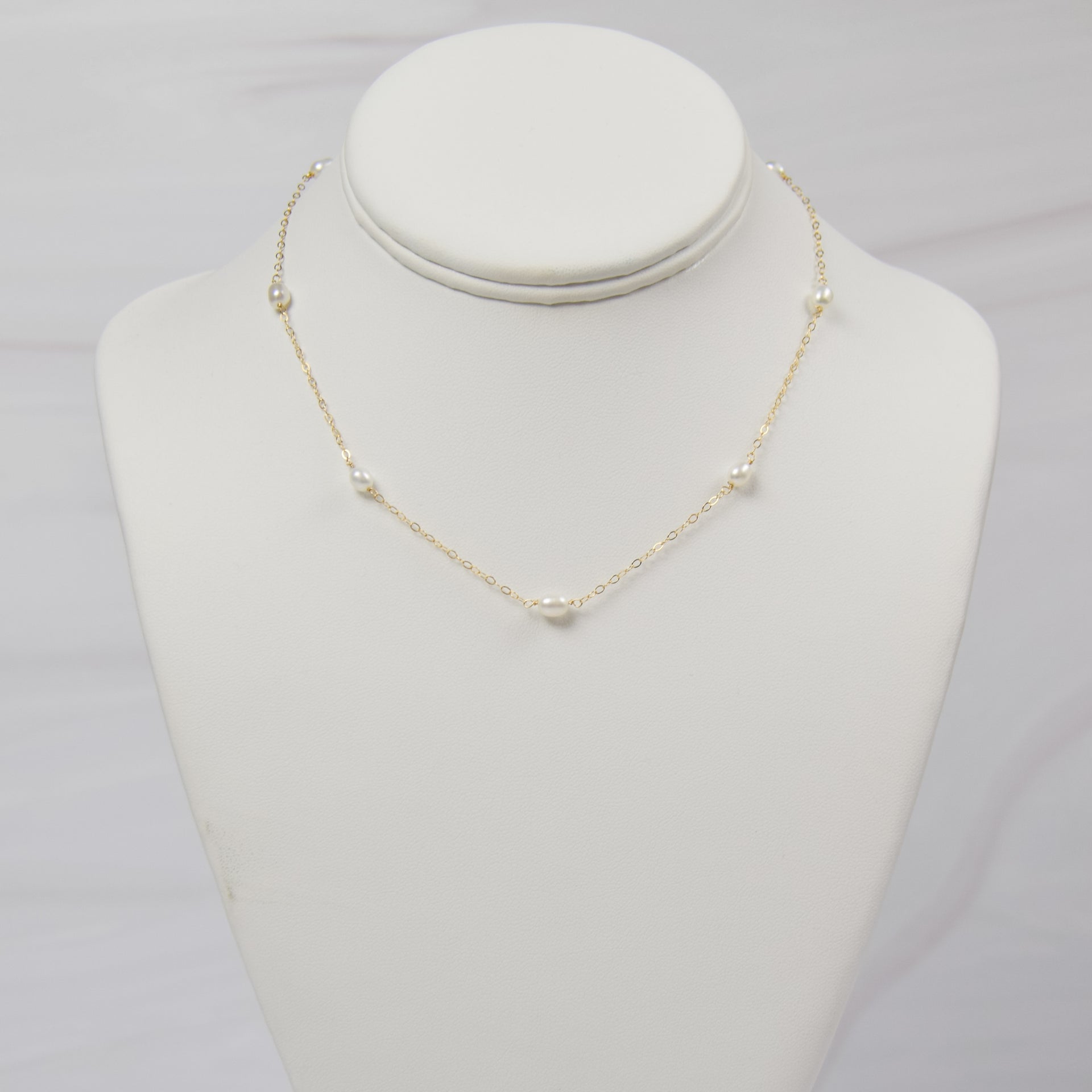 The Treasured Pearls Necklace features freshwater pearls spaced 1.5" apart with a dainty chain to create a beautiful and timeless piece of jewelry. This pearl and chain necklace is sure to be treasured for years to come.